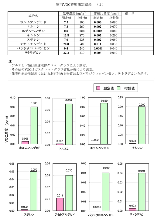 また、日本住宅性能表示基準として、この中でホルムアルデヒド、トルエン、キシレン、エチルベンゼン、スチレン、及びアセトアルデヒドの6物質を定めました。